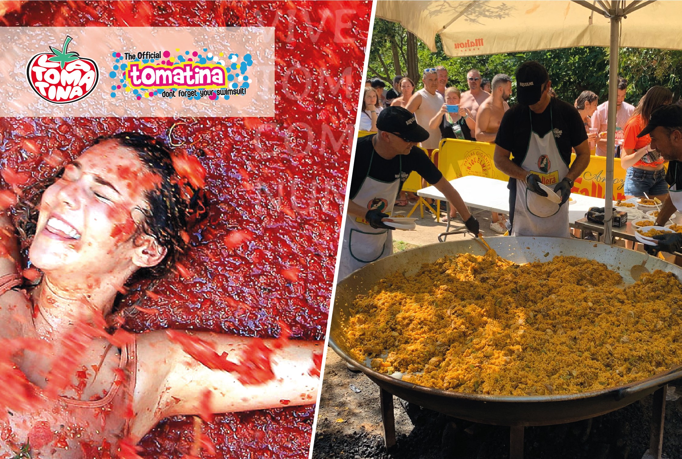El billete incluye viaje de ida y vuelta, ducha, ticket de entrada a la tomatina, seguro de transporte, camiseta de tomatina y staff en el autobús. Opcionalmente puedes elegir paella y sangría.